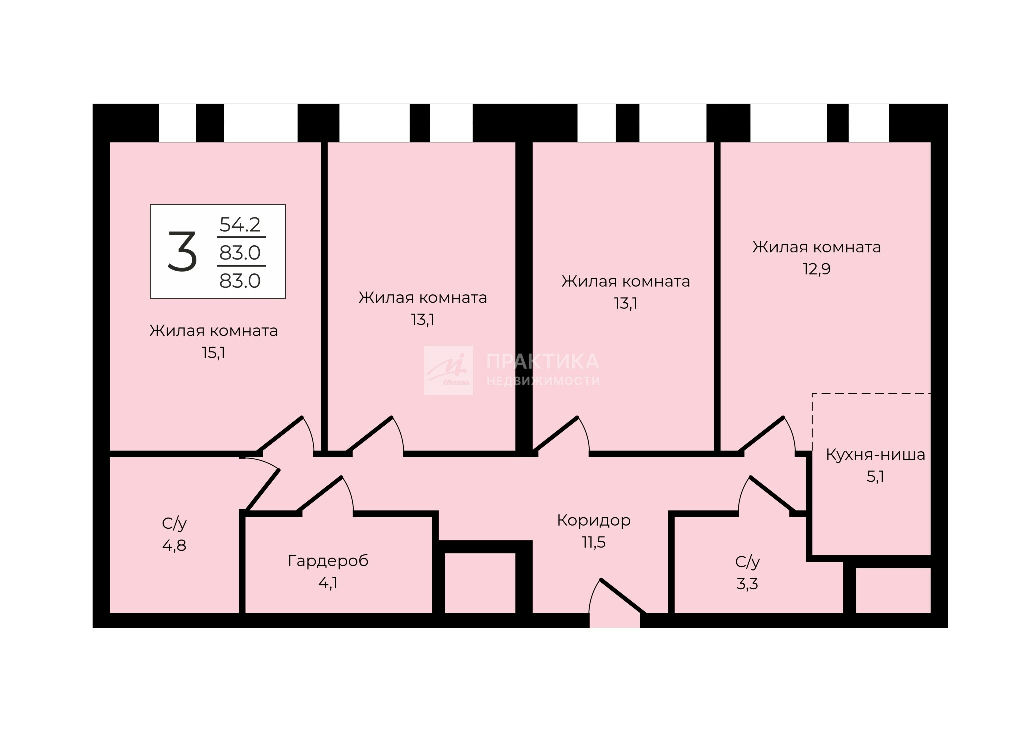 Общая: 83 м2