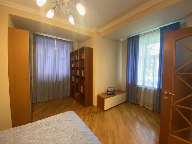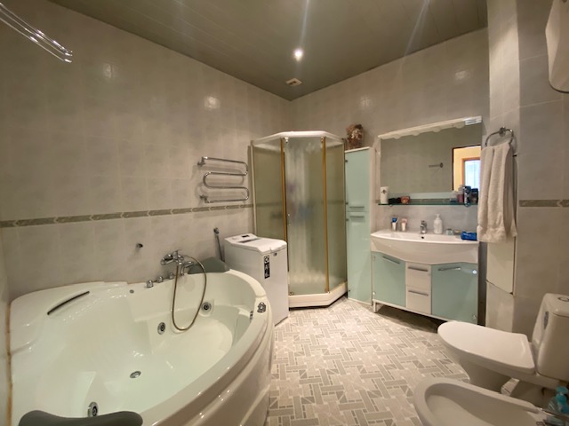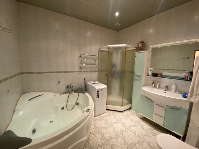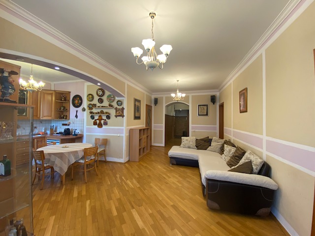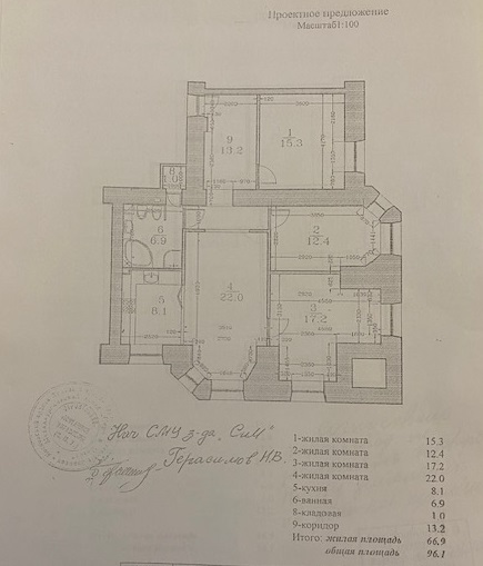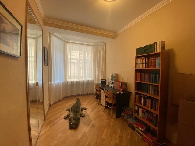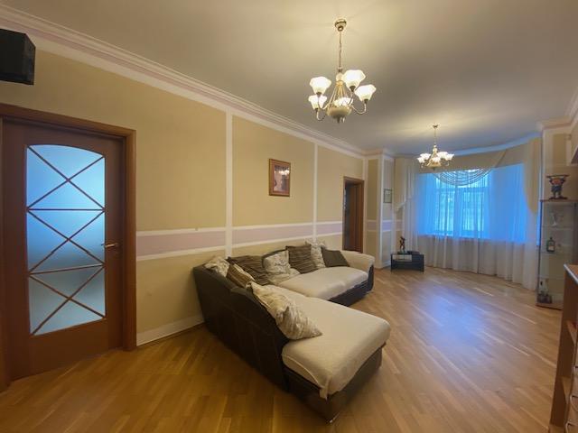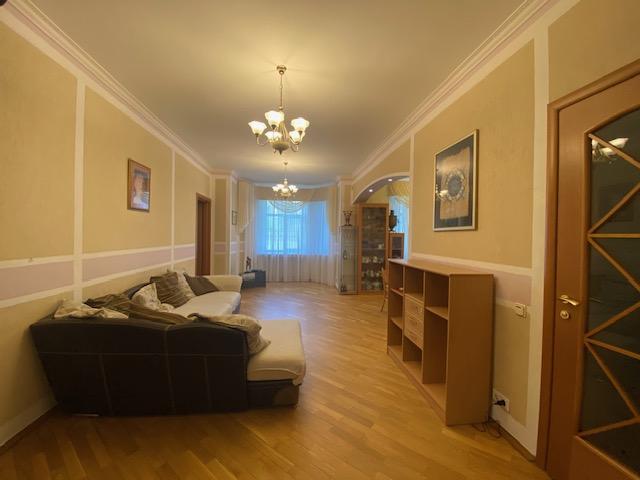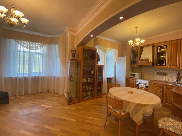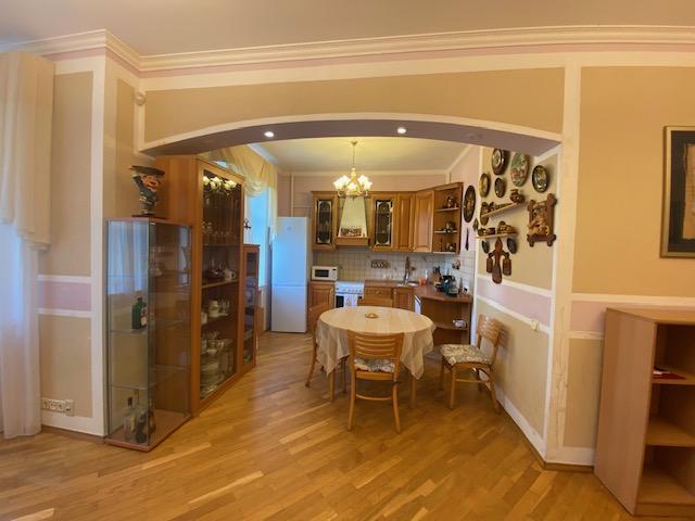 Планировка квартиры: Общая площадь-97,8кв.м., жилая площадь-66,9кв.м., комнаты-15,3кв.м., 12,4кв.м., 17,2кв.м., 22кв.м., кухня-8,1кв.м., ванна-7кв.м., коридор 13,2кв.м., комнаты изолированы: 17,2-12,4-15,3, кухня-гостинная 31кв.м., санузел совмещен, балкона нет, высота потолков 3,2кв.м., В ГОСТИННОЙ ЭРКЕР, КОТОРЫЙ МОЖНО ИСПОЛЬЗОВАТЬ КАК БАЛКОН, в доме газовая плита, на полу паркет, есть потайная комната. Квартира распашная(окна на 2 стороны). Этаж фактически 3, так как отчет идет без учета 0 этажа. В доме 2 лифта, 4 квартиры на этаже, подъезд отремонтированный. Есть бесплатная стоянка для авто, двор облагорожен и установлены лавочки для отдыха.
