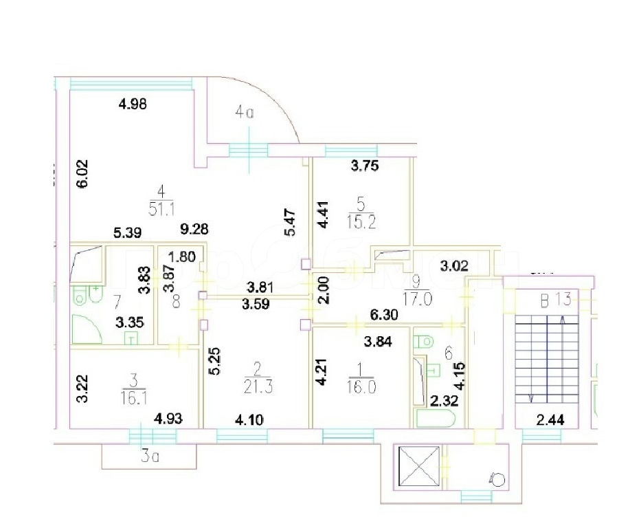 Комнаты: 51 21 16 16 м2