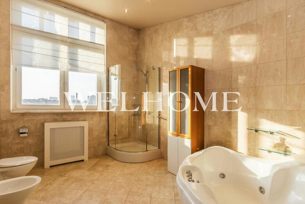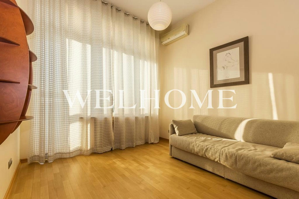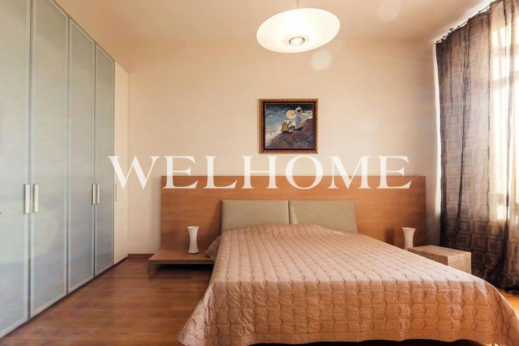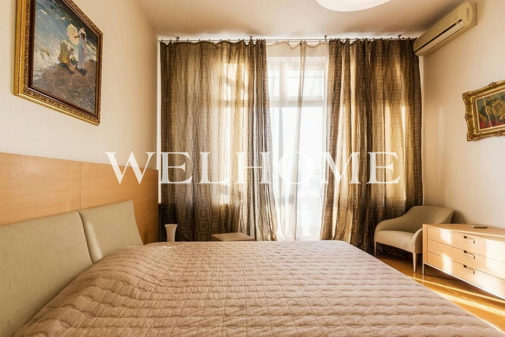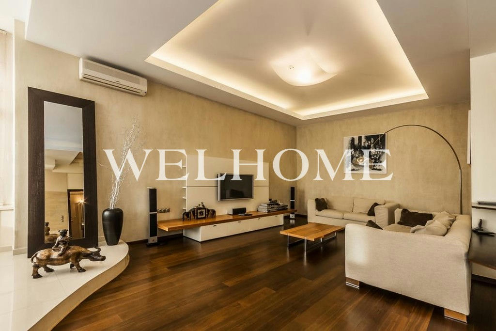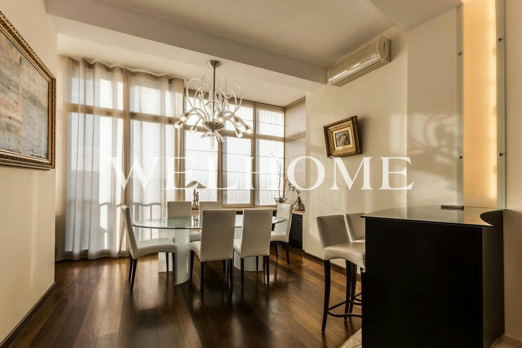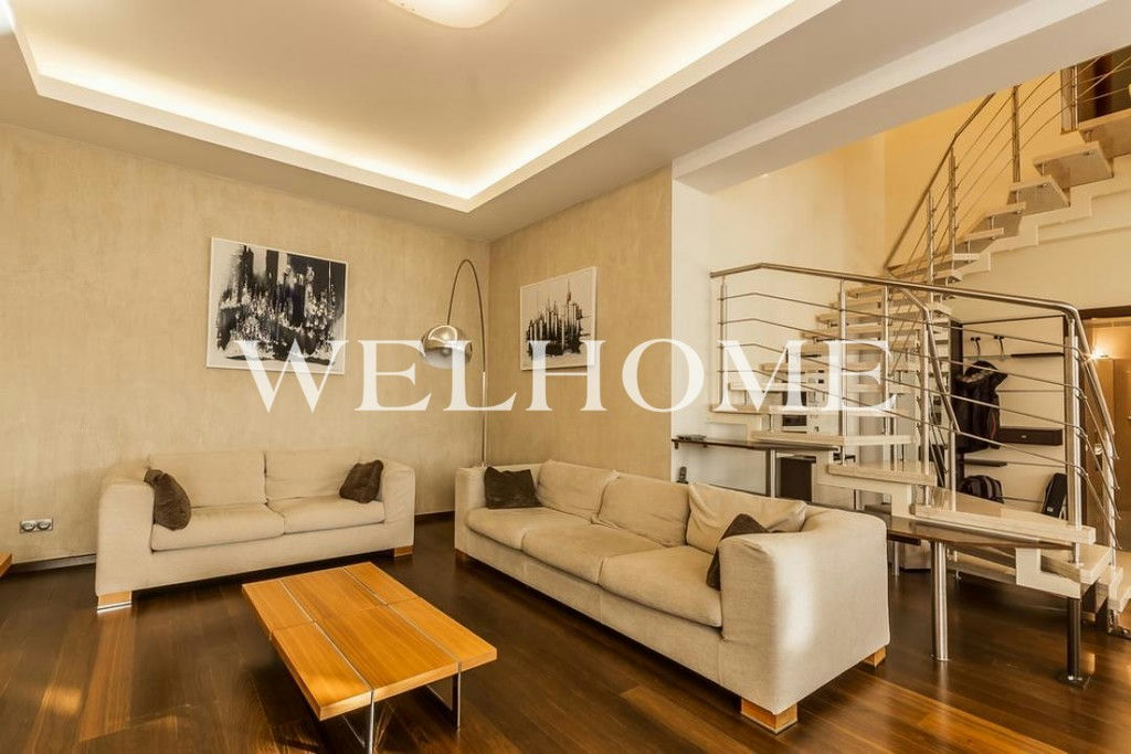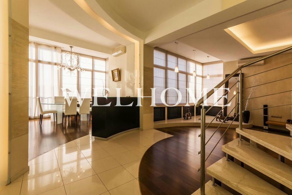 ID объекта на сайте Welhome: G-2260. На продажу предлагается двухуровневый пентхаус с отделкой в современном стиле. Пространство функционально спланировано:первый уровень: просторная гостиная, кухня-столовая, гостевой санузел;второй уровень: две спальни со своими санузлами, кабинет, гардеробная, две лоджии. В наличии вся необходимая мебель и бытовая техника от ведущих мировых производителей. Высота потолков 3,5мВ подземном паркинге можно приобрести одно машиноместо стоимостью.Новый монолитный дом, 2001 года постройки - всего 18 квартир.