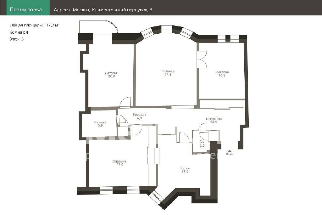 ID 23138 Предлагается прекрасная 4-комнатная квартира в дореволюционном особняке 1912 года в Замоскворечье.
