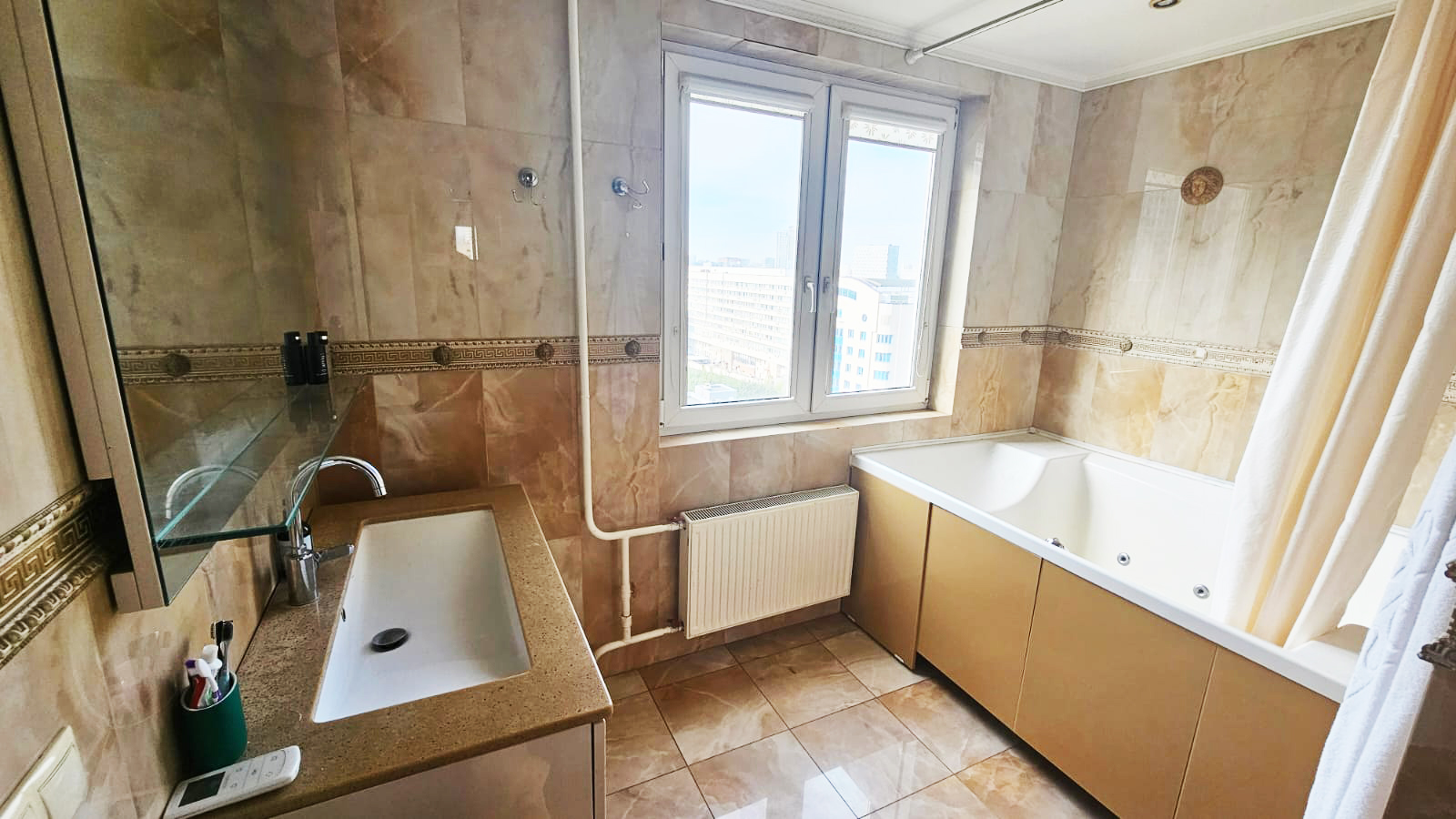 4 изолированных комнаты, 2 лоджии, холл, 2 совмещенных санузла, кондиционер, подогревы полов и многое другое, всё это создает в квартире уют для большой семьи.