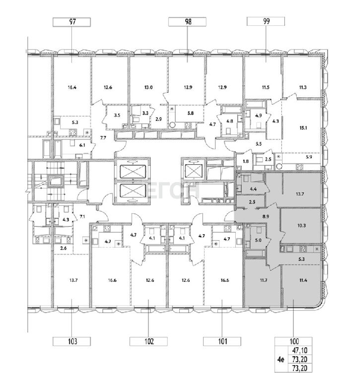 Комнаты: 13,7/10,3/11,7/11,4 м2