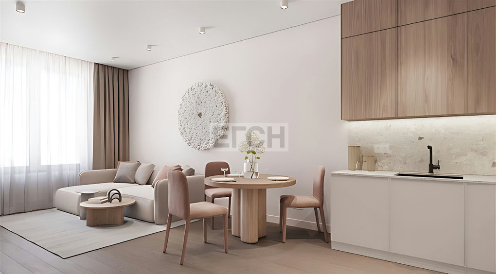 Планировка квартиры состоит из: Просторной гостиной+ кухня ниша, трех спален, вместительной гардеробной, двух санузлов. Система "умный дом".