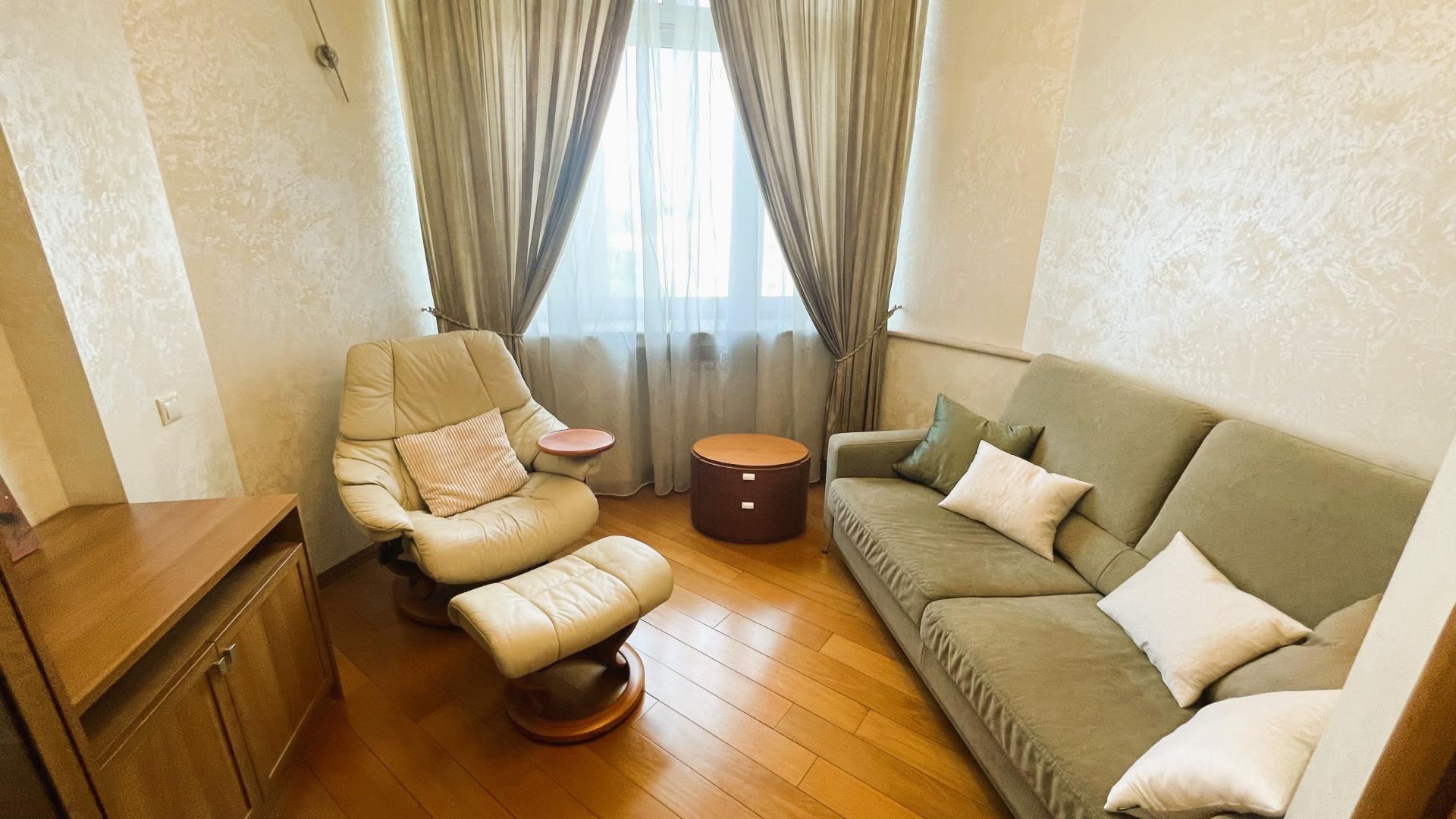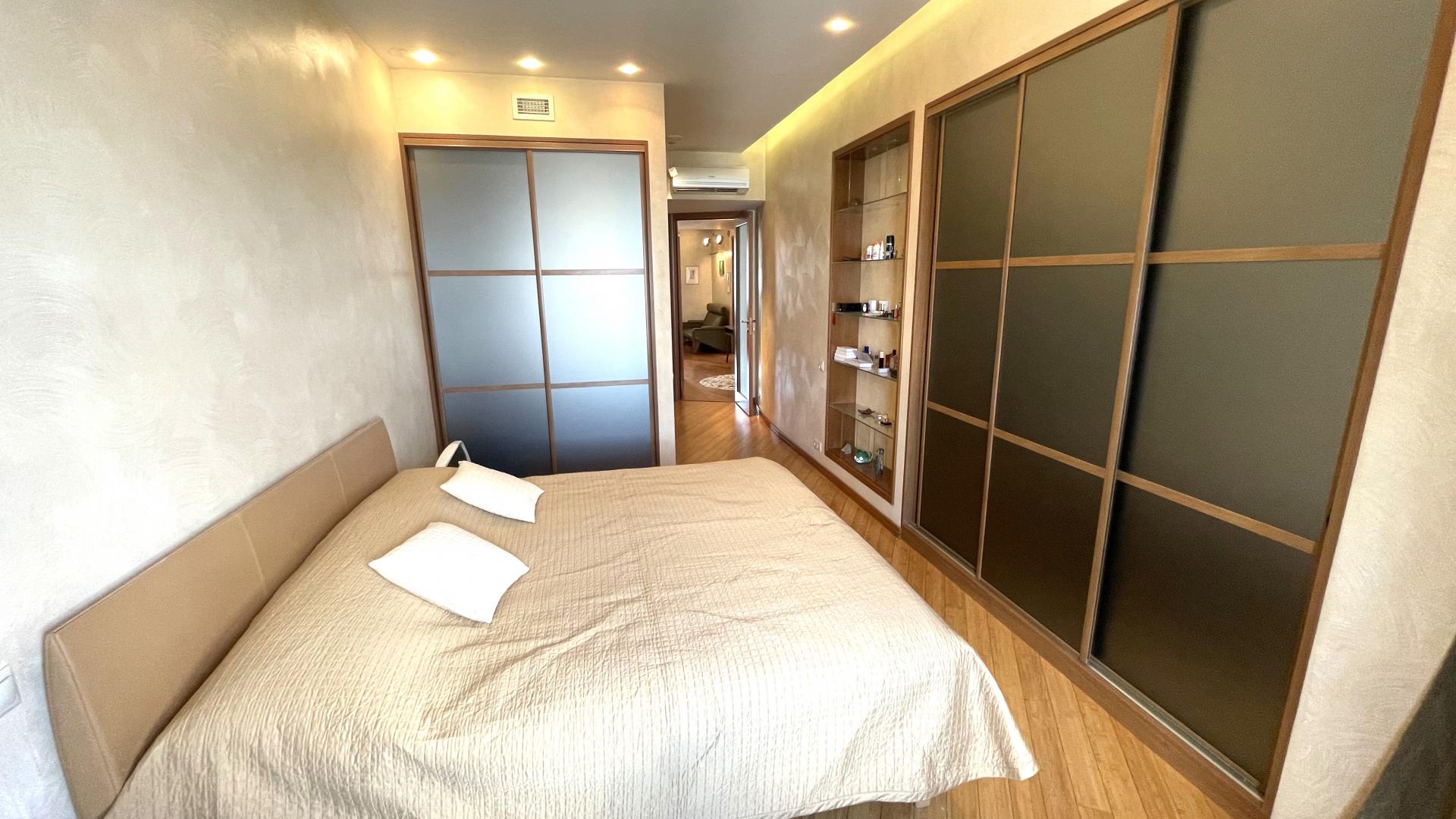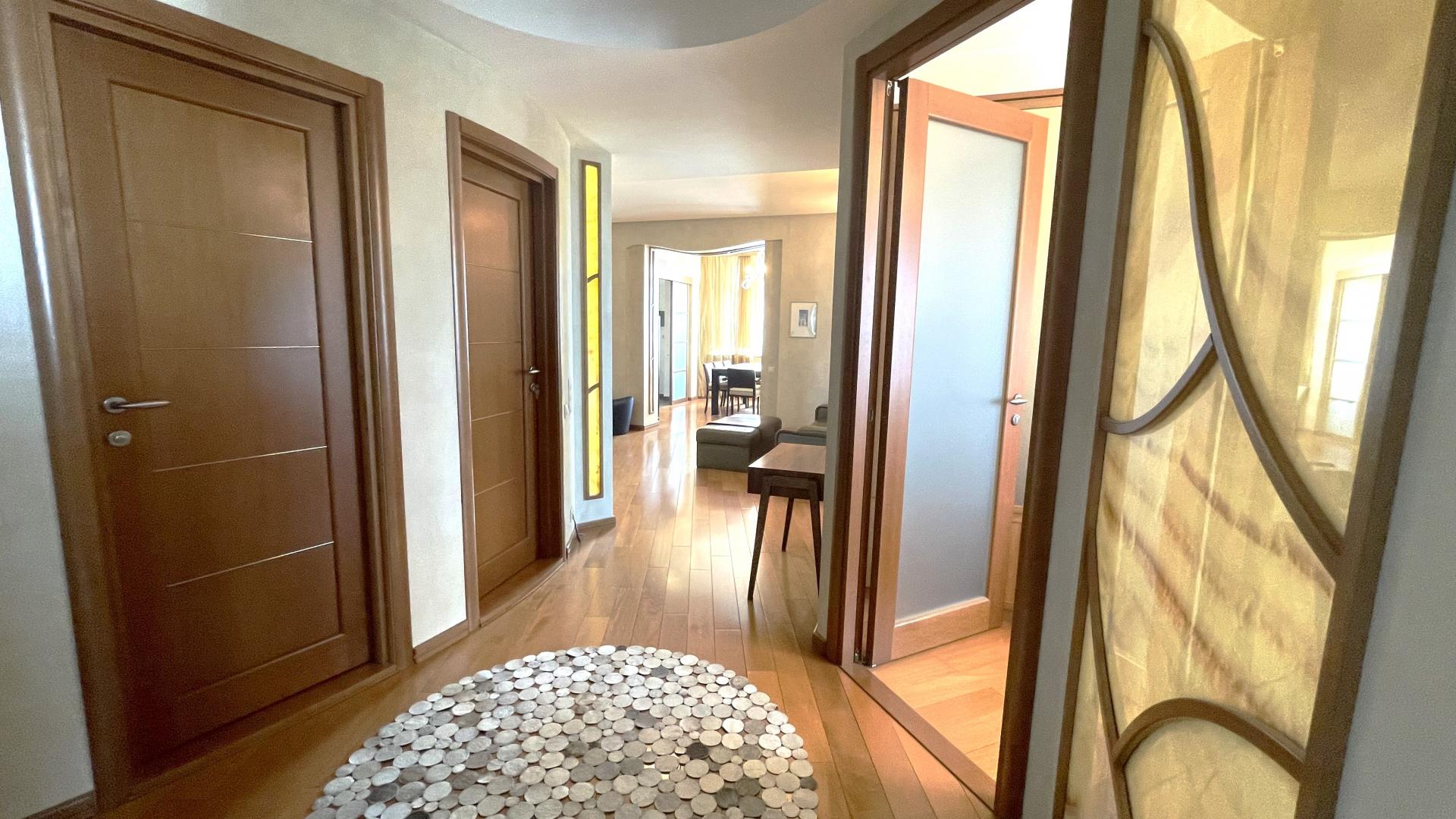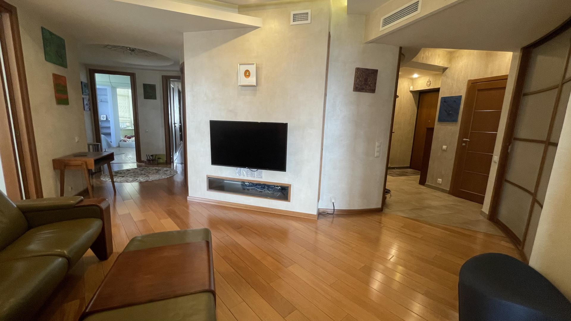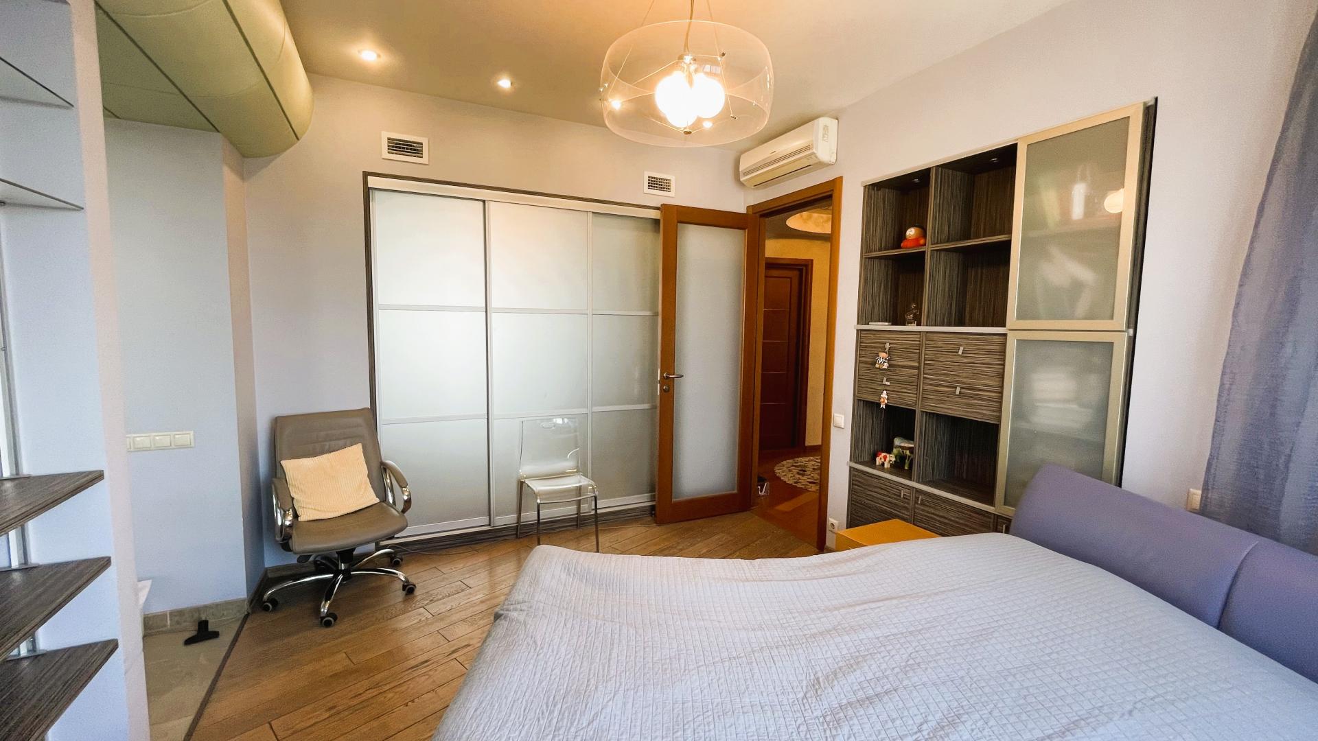 В квартире выполнен высококачественный дизайнерский ремонт. Функциональная планировка: кухня-столовая-гостиная 35 кв м плюс большая лоджия (зона готовки отделена от столовой раздвижной дверью, что позволяет зонировать пространство или сделать его единым) , 4 ИЗОЛИРОВАННЫЕ КОМНАТЫ: мастер-спальня с собственным сан/узлом, вторая спальня с большой лоджией, третья комната и небольшой кабинет (гостевая комната или небольшая детская), просторный холл (можно использовать в качестве второй маленькой гостиной или как кинозал). В квартире три сан/узла, большая постирочная-кладовка (техническая комната со стиральной и сушильной машиной и местами для хранения), просторная прихожая с двумя очень вместительными встроенными шкафами. Реальная площадь квартиры с лоджиями 162 кв.м.