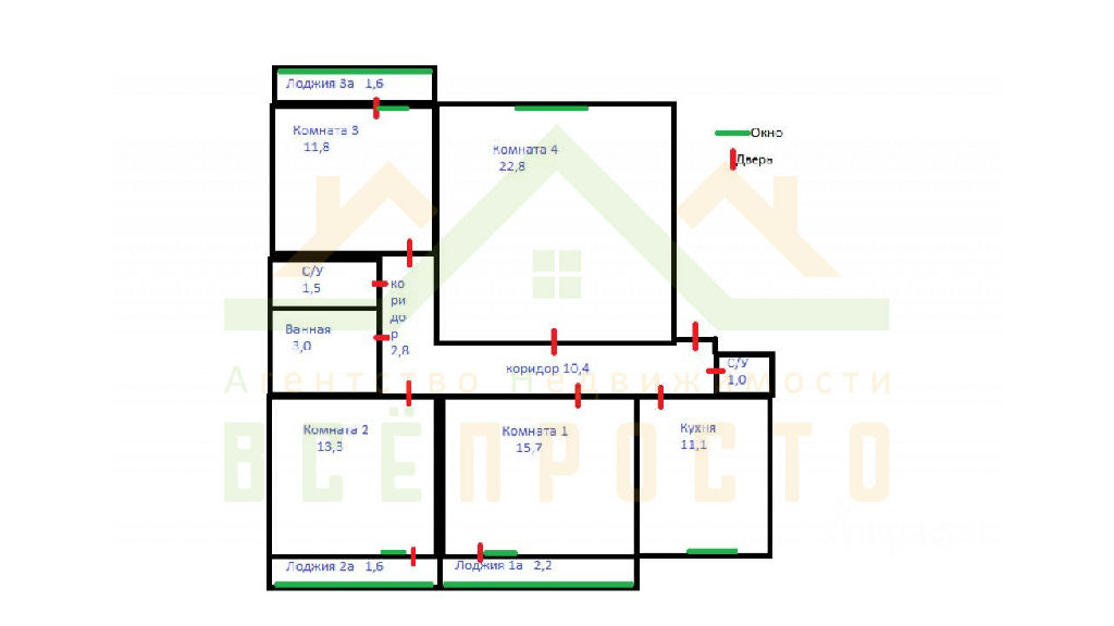 Комнаты: 22.8 15.7 13.3 11.8 м2