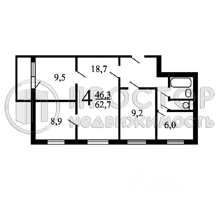 Общая: 62,6 м2