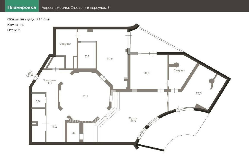 Общая: 216 м2