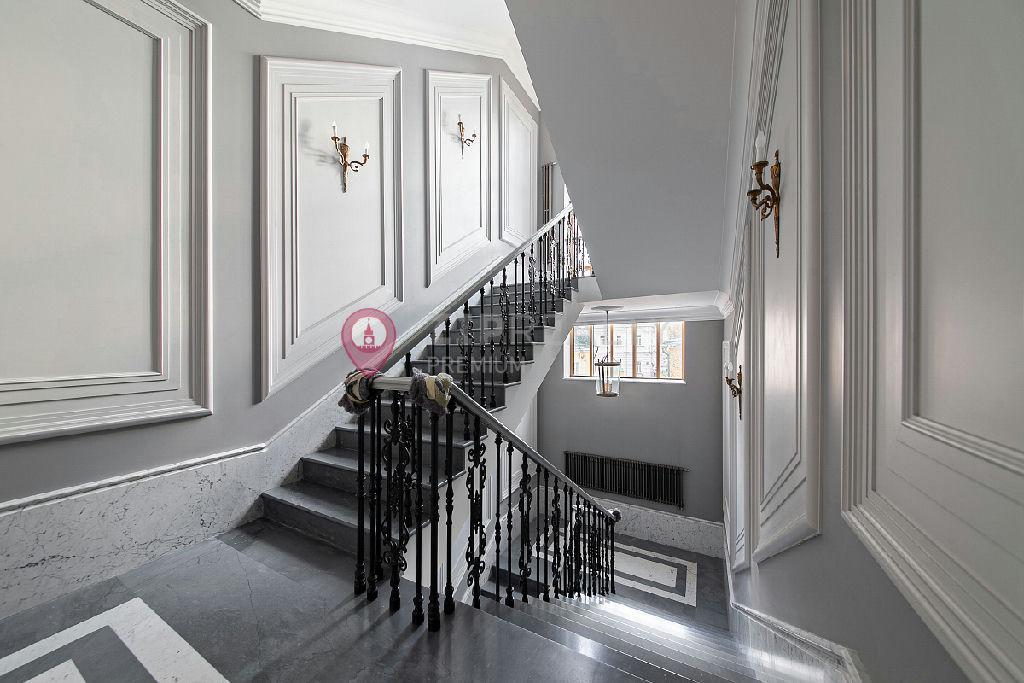 В квартире можно комфортно организовать до 5 спальных со своими ванными комнатами, а в гостиной разместить дровяной камин.