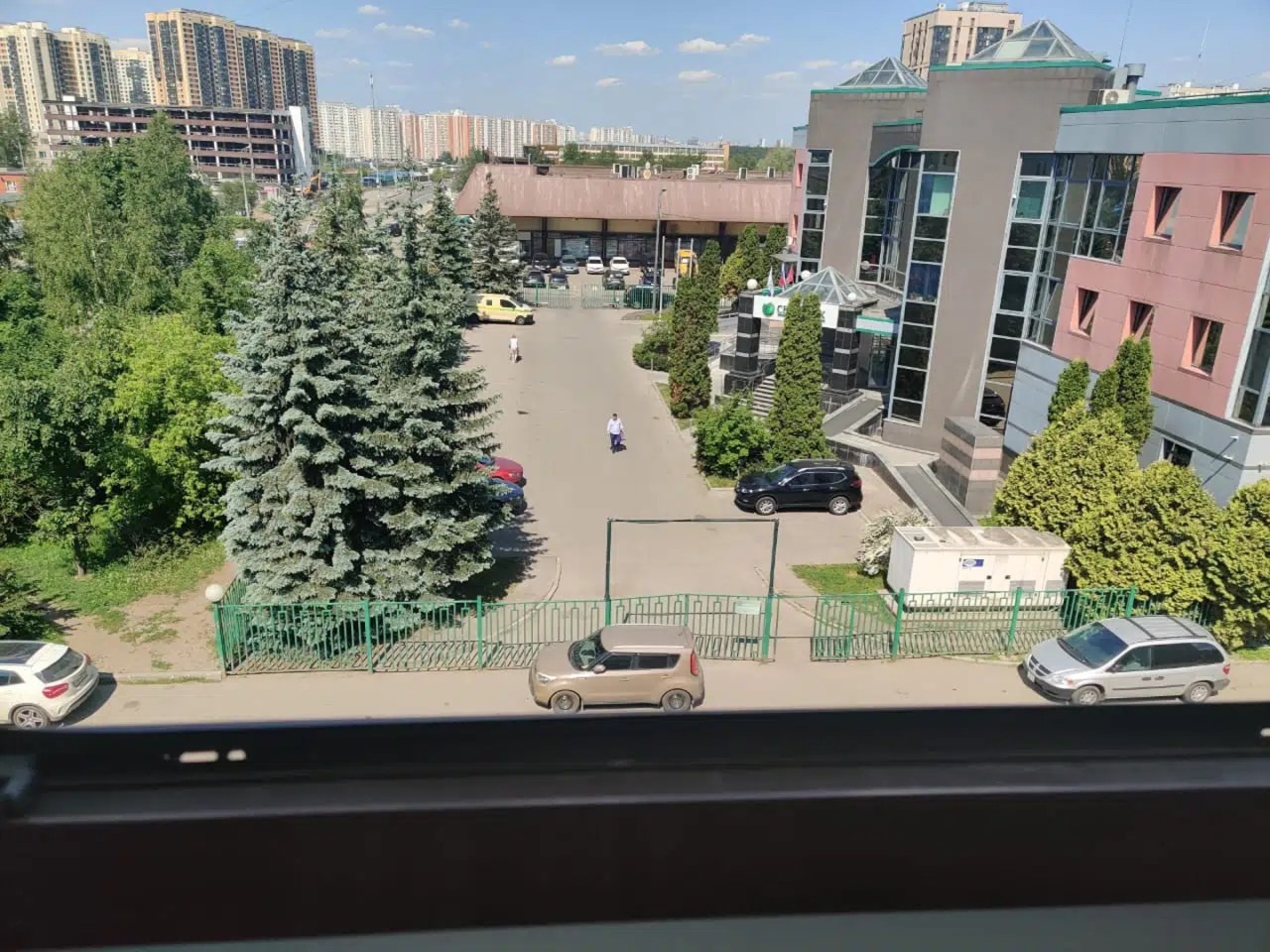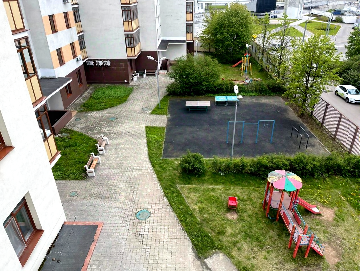 В огороженном высоким металлическим забором дворе площадью 0,74 Га въезд под шлагбаум, удобные парковочные места в избыточном количестве, благоустроенные места для отдыха, спортивная и две детские площадки, в подъезде домофон, промывной гигиеничный мусоропровод, большая колясочная, на первом этаже клиника "Медси".