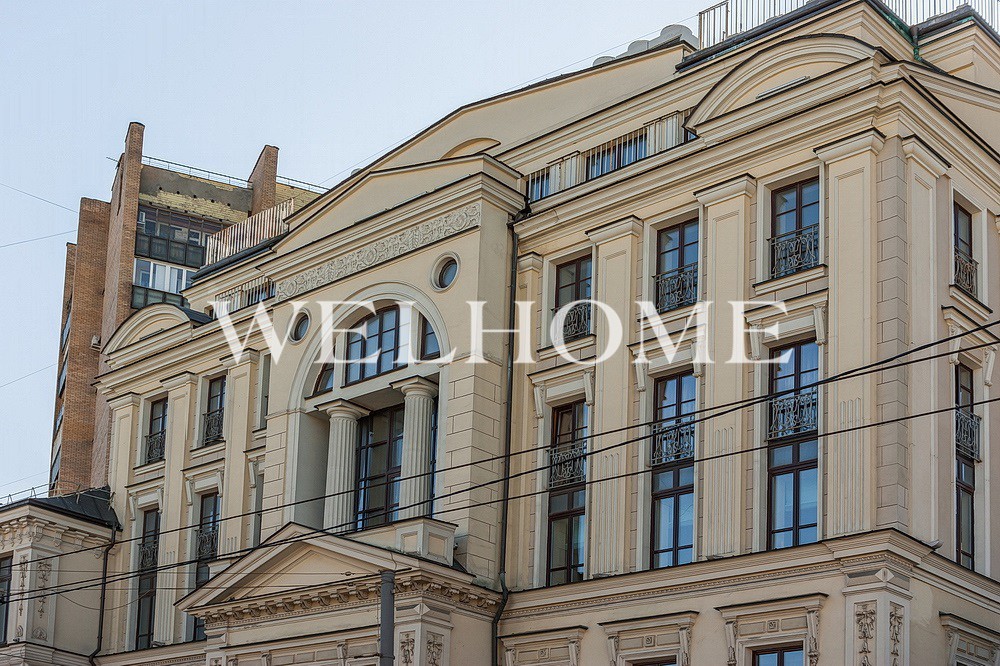 ID объекта на сайте Welhome: G-005. На продажу выставлен двухуровневый пентхаус в аристократическом особняке на Большой Никитской улице.Пентхаус предлагается в состоянии под отделку, свободная планировка позволяет организовать до 5 спален с собственными санузлами.Поэтажное описание 1 уровень: 340 кв. м, 3 балкона. Высота потолков 3,15 м.29 витражных окон, из них 20 со стороны спален. Из каждой спальни предусмотрен выход на балкон.2 уровень: 120 кв. м, балкон 120 кв. м.Куполообразная крыша, высота потолков 2,7-3,95 м.Предусмотрен второй свет, панорамное остекление и 6 круглых окон со стороны галереи, 2 выхода на балкон.Все оконные блоки и витражи выполнены из натурального дуба, с двухкамерным стеклопакетом, с коэффициентом шумоизоляции 4,2 Дб, лоджии полностью остеклены. Ограждающие конструкции балконов и террас декорируются стальными решетками декоративной ковки.Пентхаус расположен в аристократическом особняке в неоклассическом стиле. Индивидуальный дизайн-проект входной группы, отделка цокольного этажа натуральным камнем. 2 машиноместа в подземном паркинге можно приобрести дополнительно.Оформлена собственность.