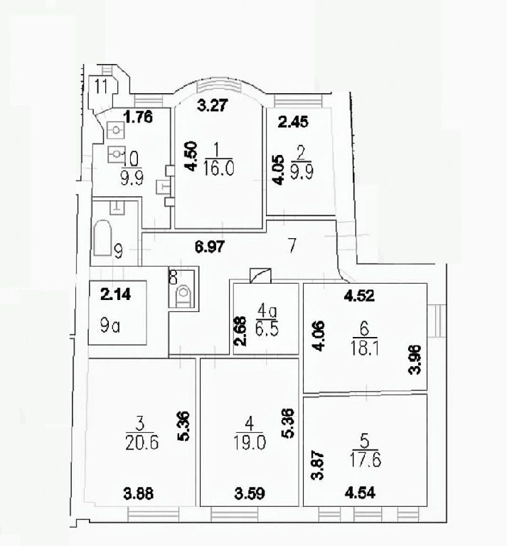 Комнаты: 21 19 18 17 16 10 м2