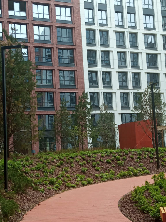 Дизайнерская входная группа, подземный паркинг. Закрытая территория с охраной. На первых этажа будут магазины, кафе, фитнес, все необходимое для комфортного проживания.