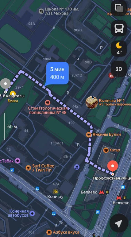 Беляево (5 мин. пешком)