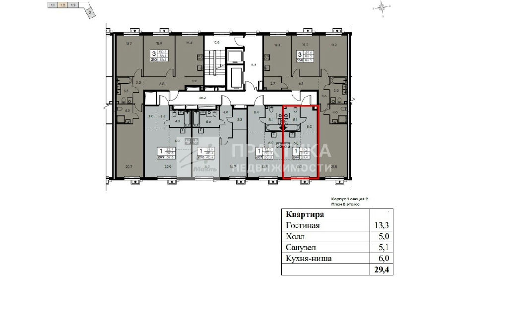 Общая: 29,4 м2