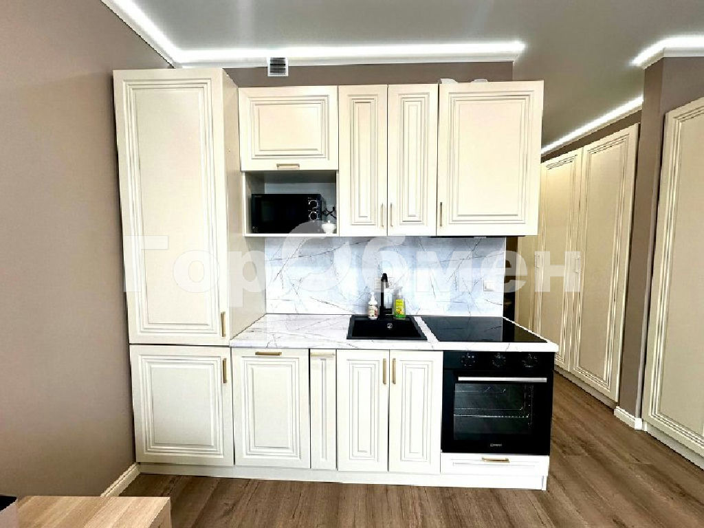 - кухня: встроенный двухкамерный холодильник, индукционная плита, духовка, ПММ, микроволновка