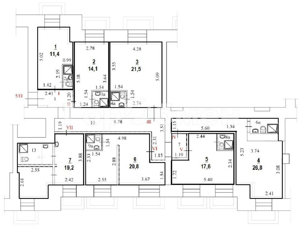 11,4кв.м, 1 на плане. Свежий ремонт, в хорошем состоянии. Цокольный этаж пятиэтажного жилого дома ("сталинка").