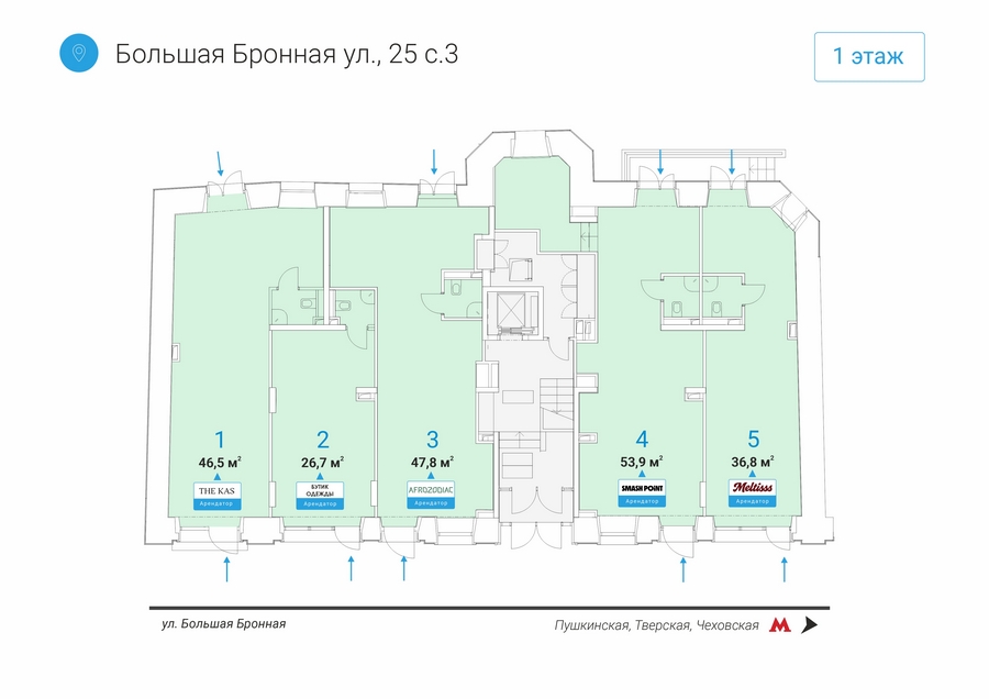 Готовый арендный бизнес. Ст.Пушкинская, 2-3 мин. пеш., Street-retail, торг. назн., Большая Бронная ул. д.25 стр.3, площ. 53,9 кв.м., 1-я линия, открытая (свободная планировка), все гор. инж. коммуник, h=3,4-3,6 м. Эл-во достаточное количество под любой вид деятельности. Высокий рекламный потенциал. Арендатор - сетевая бургерная "SMASH POINT", ДДА – 7 лет, МАП - 1 260 000 рублей. Цена – 204 120 000 руб. Компания «Estate Capital». 903-960-70-87. www.ec.ru