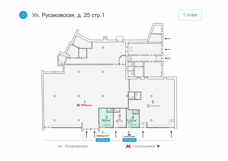 Готовый арендный бизнес. Ст.Сокольники, 3 мин. пеш., Street retail, Русаковская ул. д.25 стр.1, площ. 15,9 кв.м., 1-я линия, планировка – свободная, перекрытия – ж/б, h=3,0 м, все гор. инж. коммуник, электричество – достаточное кол-во под любой вид деятельности. Арендатор - магазин напитков "ТАБАК&СИДР", МАП - 190 000 рублей. Цена – 25 080 000 рублей. Компания «Estate Capital». 903-960-70-87. www.ec.ru