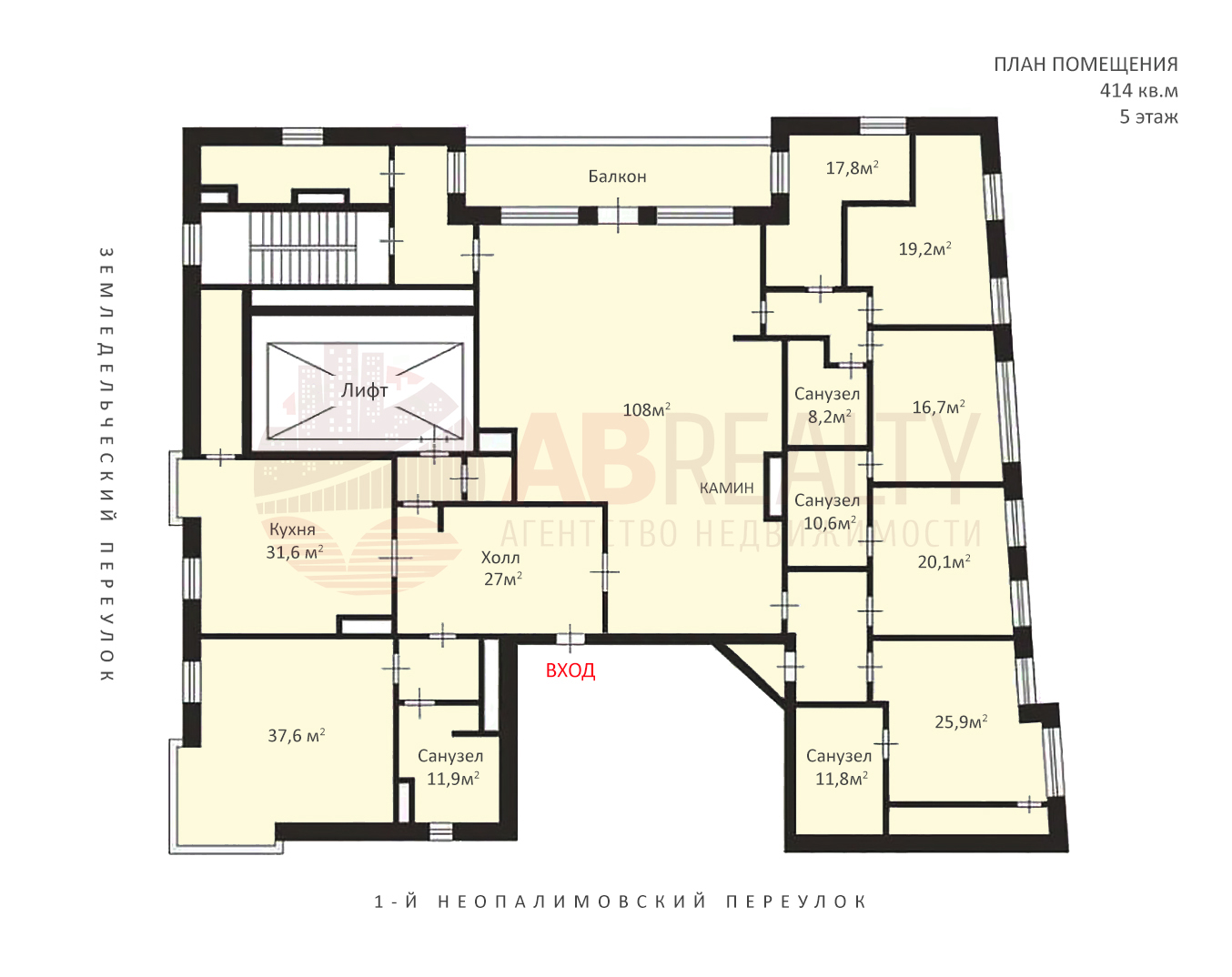 Площадь min: 414 м2