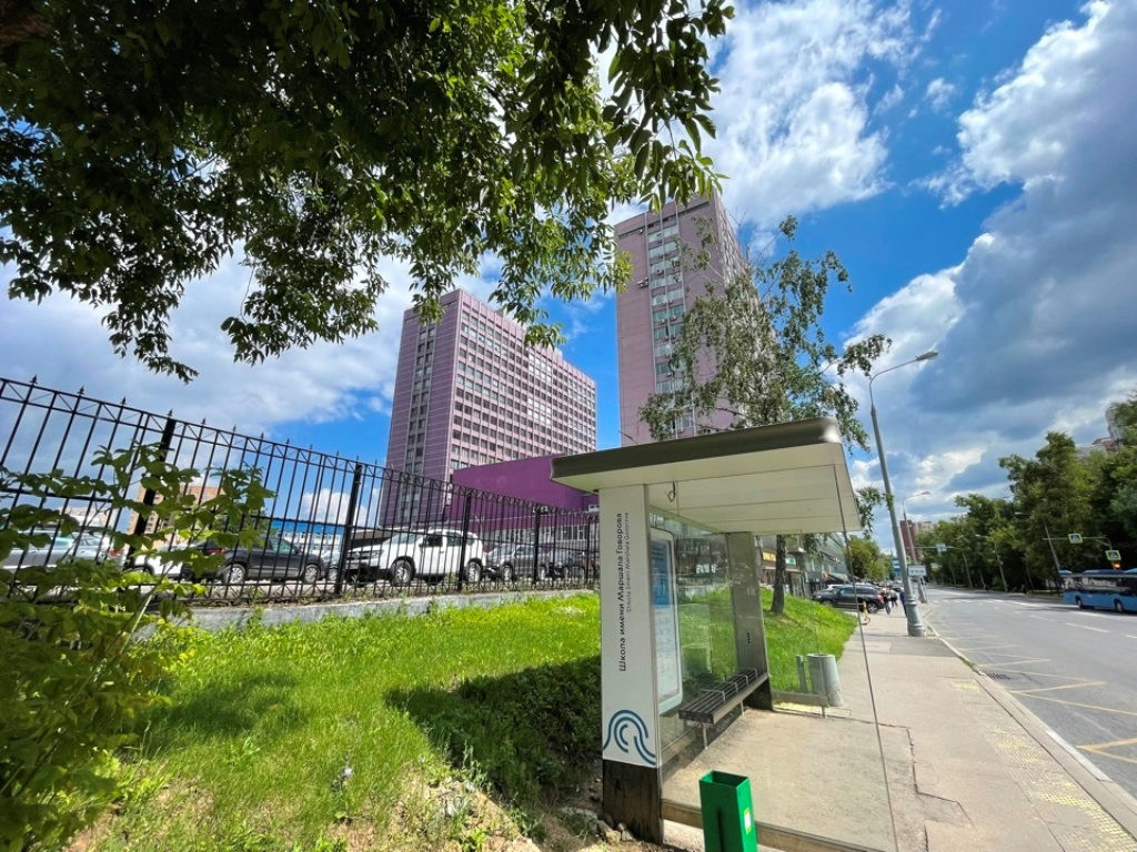 Пешая доступность двух станций метро, рядом автобусная остановка.
