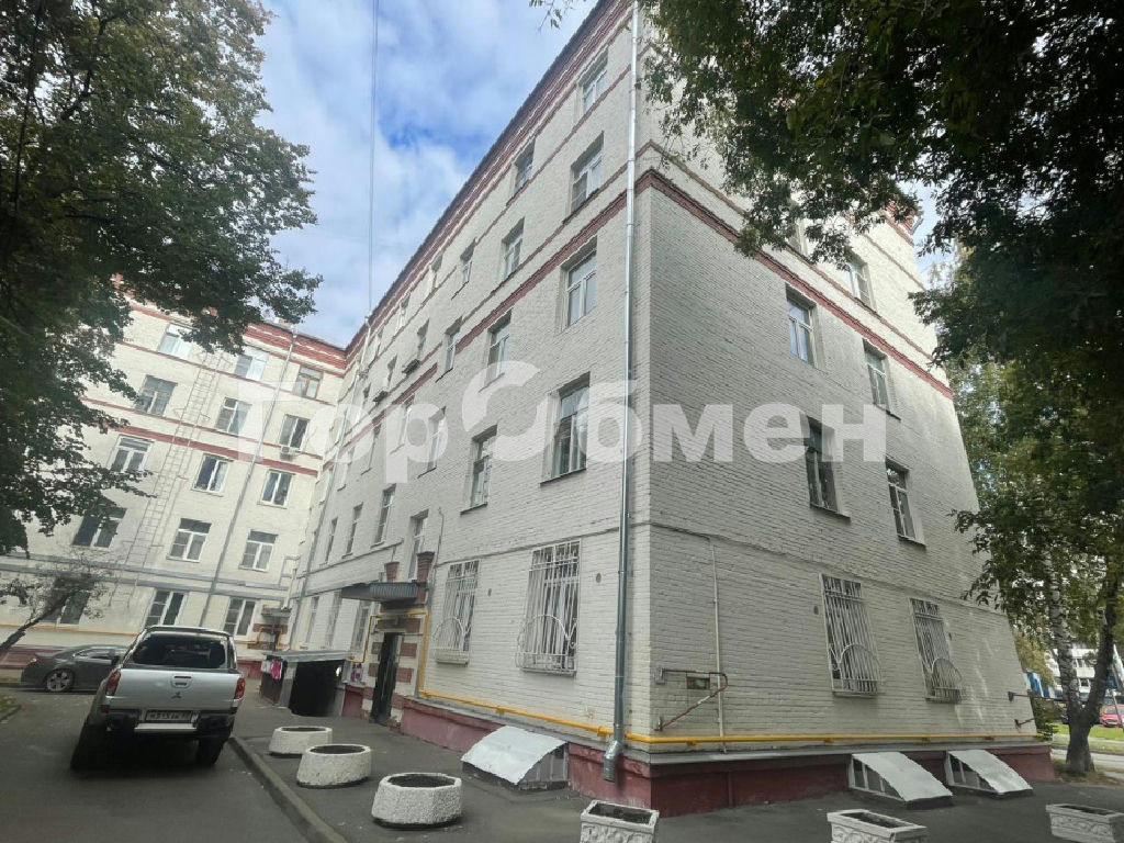 Цокольный этаж пятиэтажного кирпичного дома. Окна в приямках.