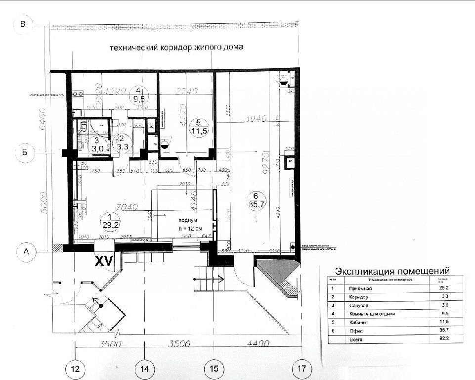 Общая площадь помещения 92.2м2.