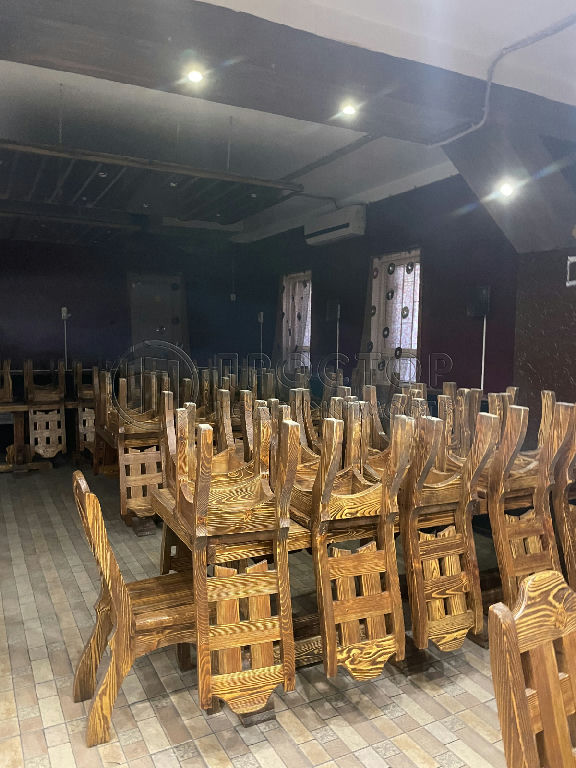 под ресторан с оборудованием, столами, стульями, залом с камином,