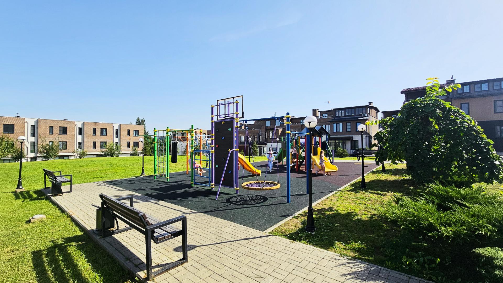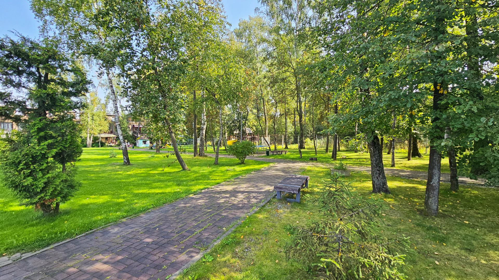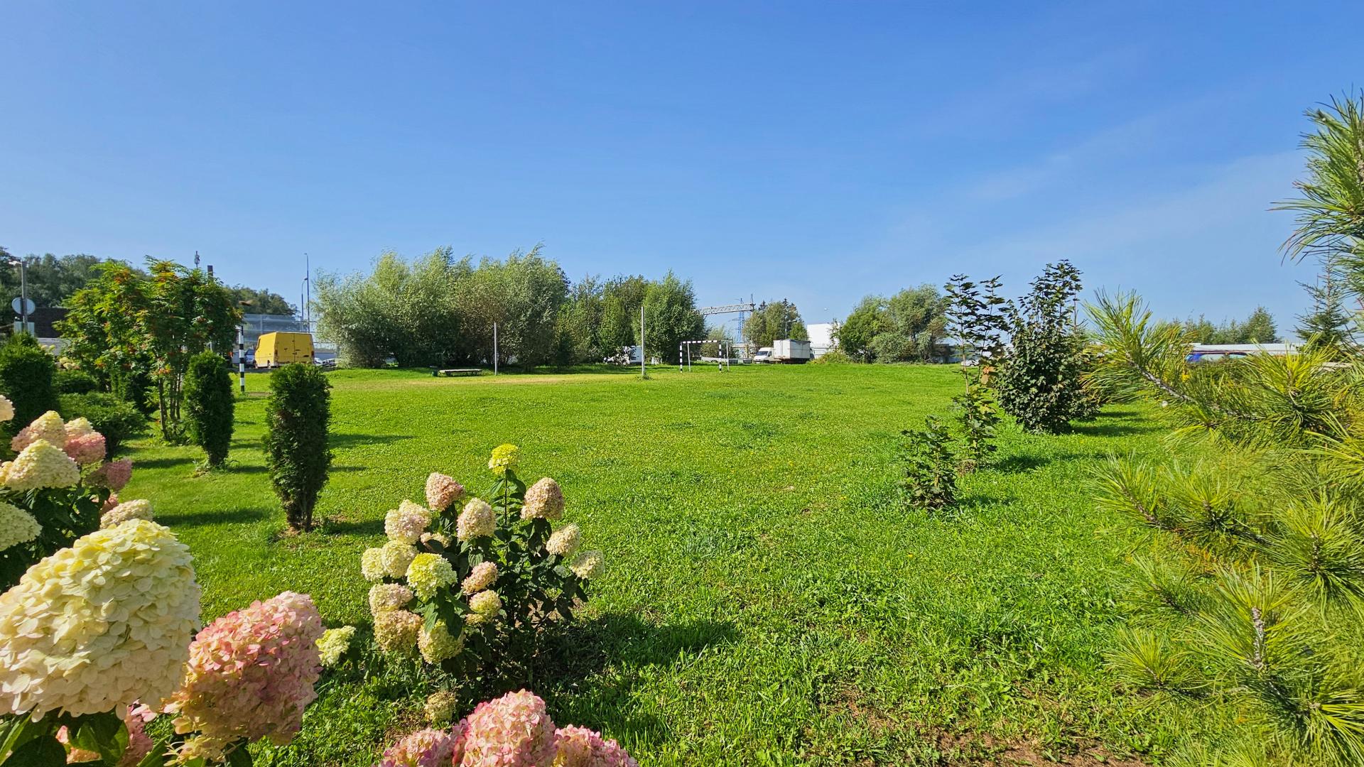 • На территории есть футбольное поле, детские и спортивные площадки, где дети могут играть, а взрослые заниматься спортом.