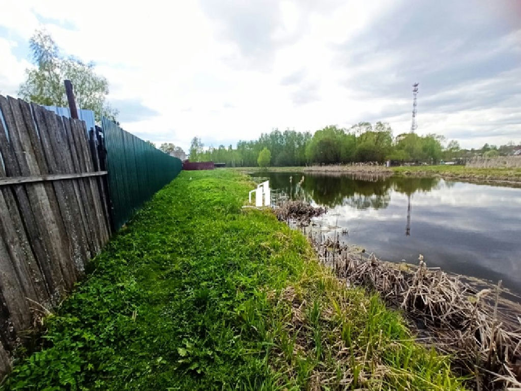 На участке имеется небольшой летний домик. Рядом пруд. По периметру забор.