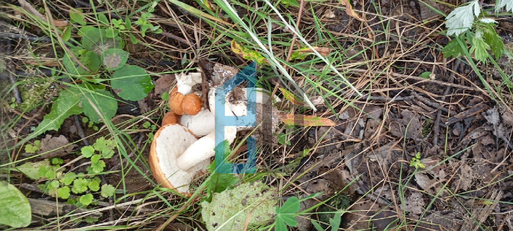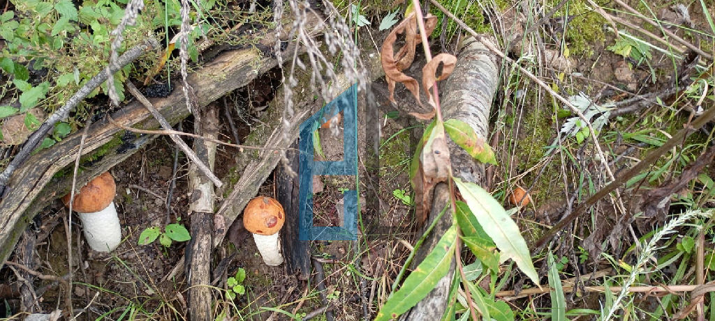 Рядом берёзовая роща,на участке растут грибы.