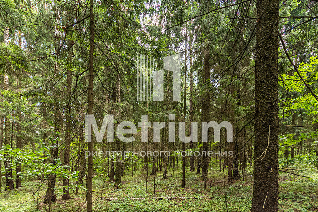 ID 13513 Лесной участок правильной формы в охраняемом коттеджном поселке на Николиной горе. Центральные коммуникации: газ, вода, электричество. На участке растут высокие деревья.
