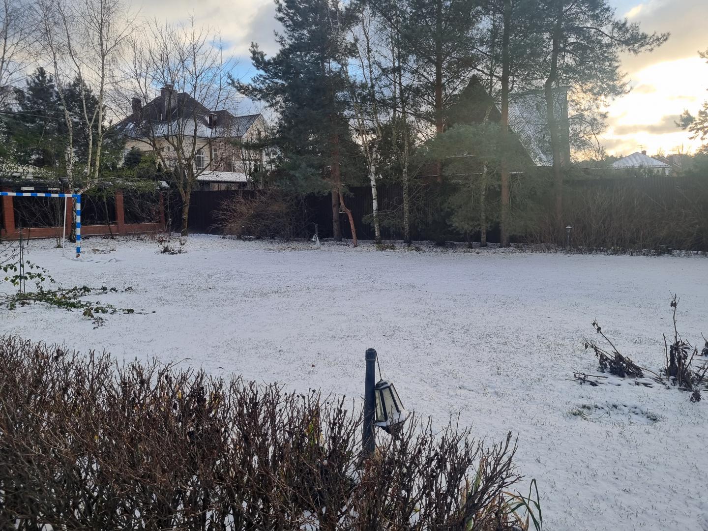 Участок огражден качественным забором с 3х сторон. Фасад с восточной стороны. Въездная группа не установлена.