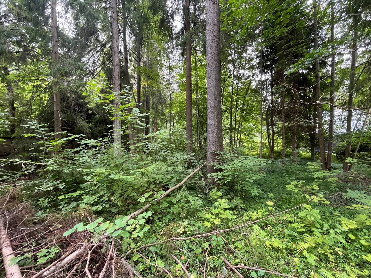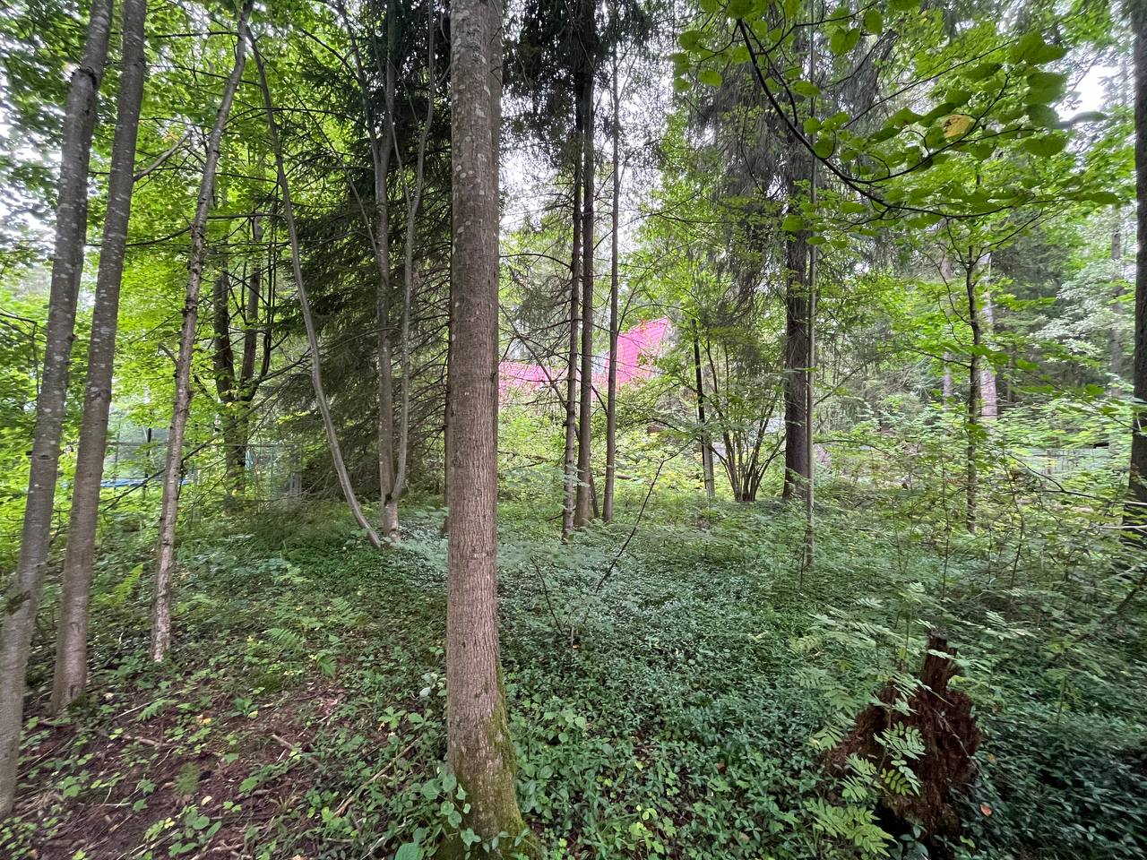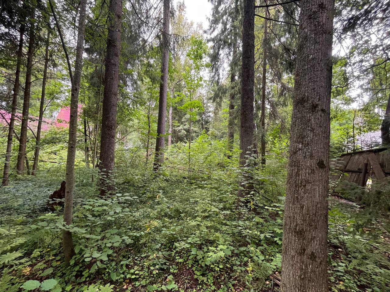 На участке растут лесные деревья. Есть старые постройки под демонтаж. На участке есть септик.