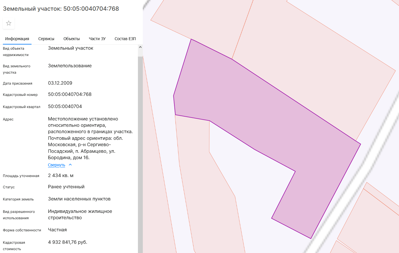 Адрес: Московская область, Сергиево-Посадский р-н, с. Абрамцево, ул. Бородина, уч. 16.